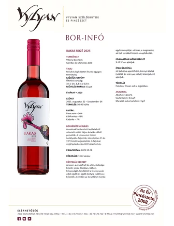 Vegán védjeggyel minősített ropogós, frissítő, száraz rozé bor, amelyben az eper és a lime üdesége köszön vissza.